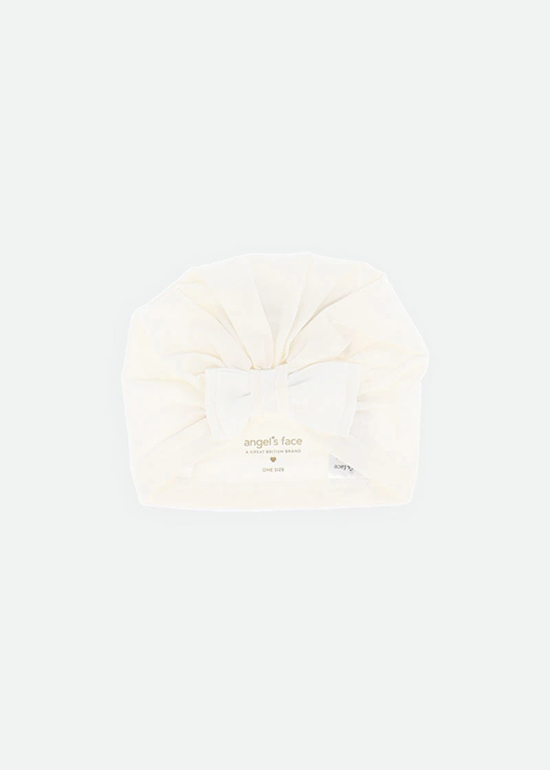 Adorable turban hat with gathering detail at the front, perfect for your little angel. Designed with a super comfortable fit made in a stretchy soft touch cotton. A statement bow adorns the front gathers adding a special Angel’s Face touch.