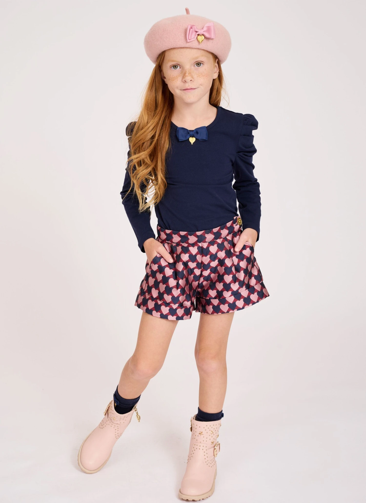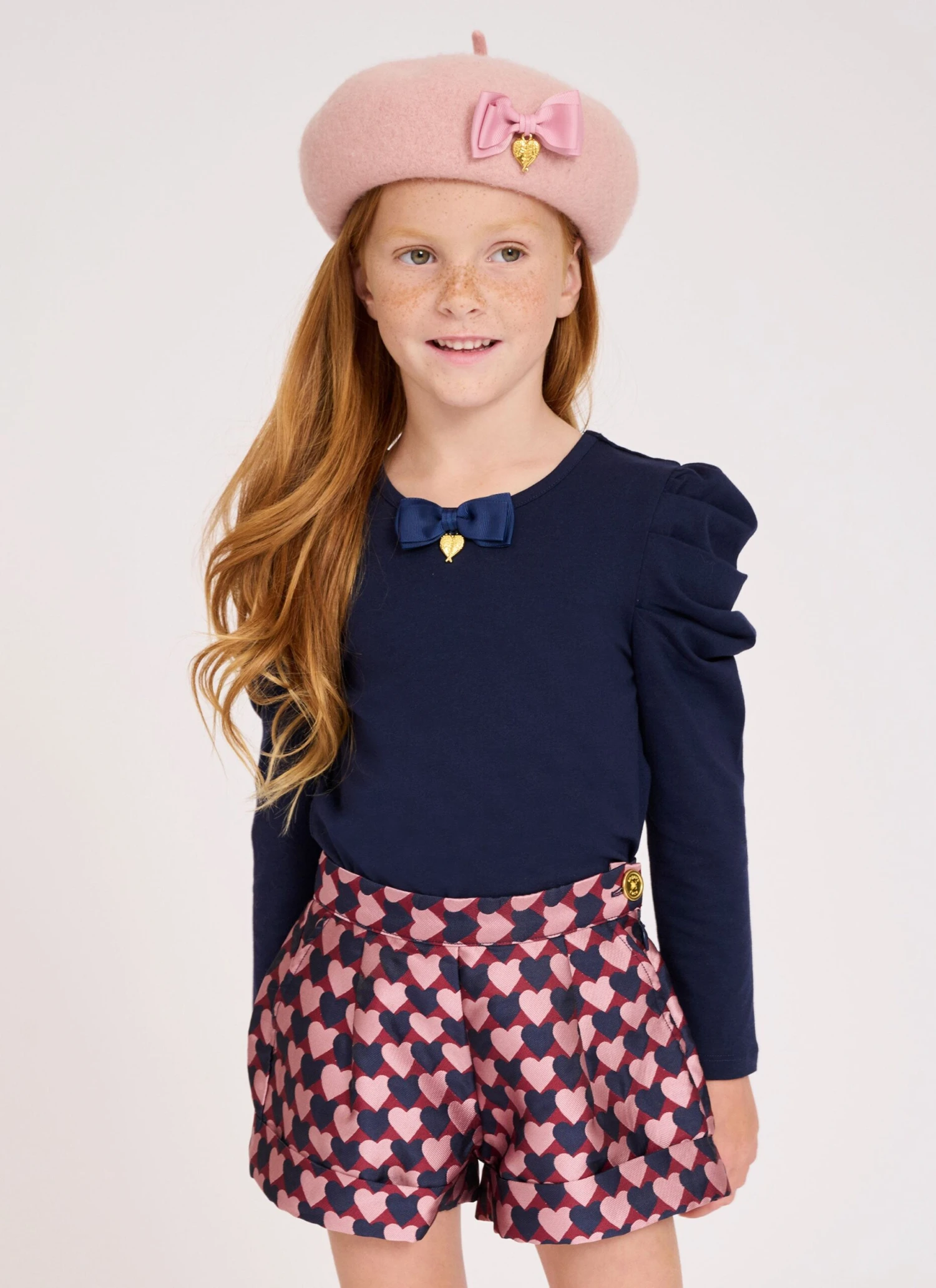 Keep warm this winter in our classic pink beret for girls. Beret is made from a soft felted wool blend featuring our signature bow and gold heart charm on the side.