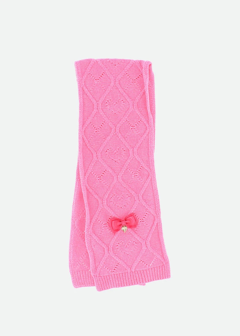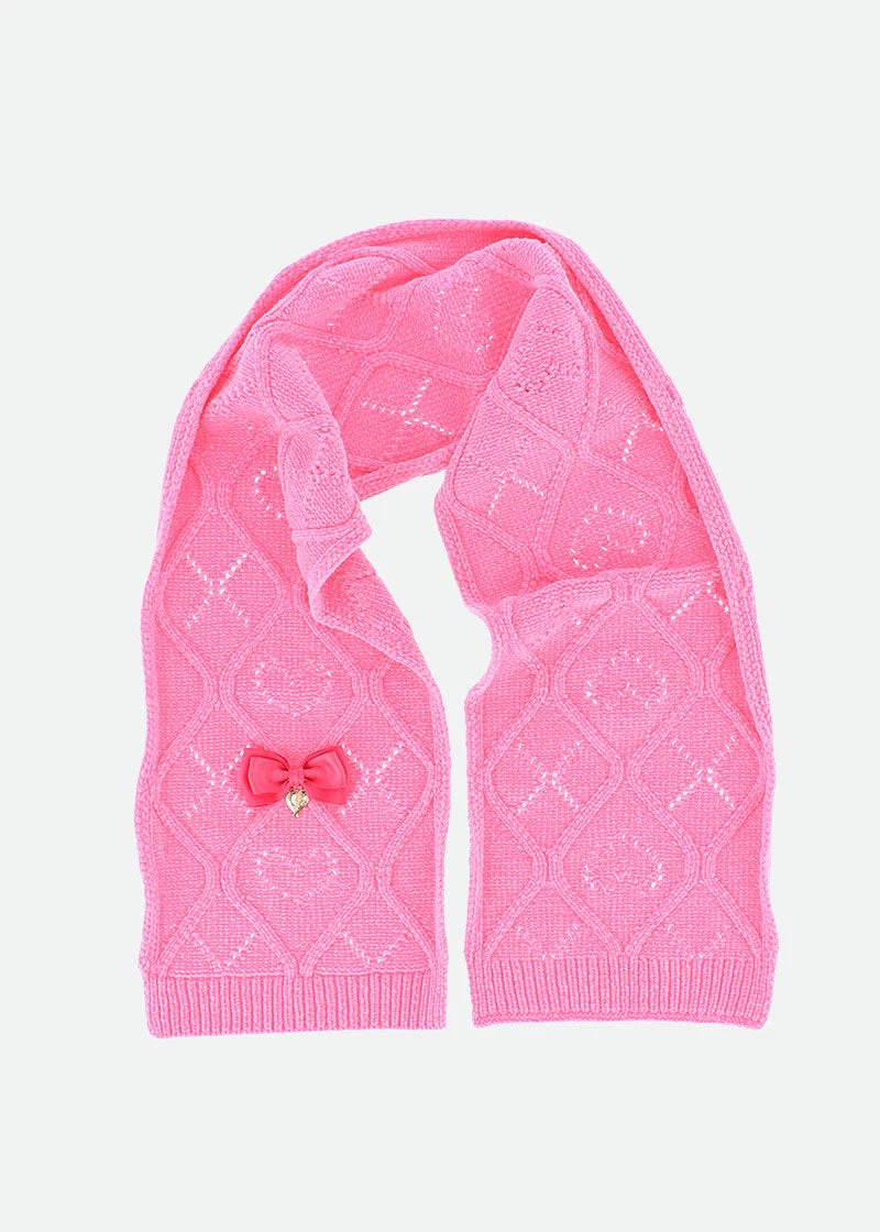 Wrap up this winter in our soft heart and cable detail pink scarf. Featuring our signature bow and gold heart charm. Pair with our Bethany hat or Bethan Jumper for the perfect matching set.