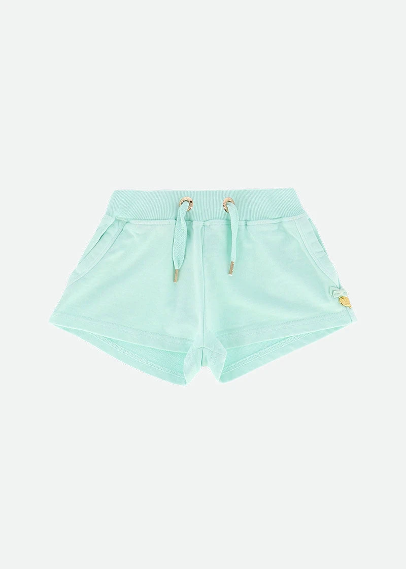 Gorgeous shorts in peppermint green made from a luxurious cotton loopback. Styled with a decorative drawcord, handy pockets for little fingers and a soft and stretchy ribbed waistband for extra comfort. Complete with our signature bow and gold heart charm.