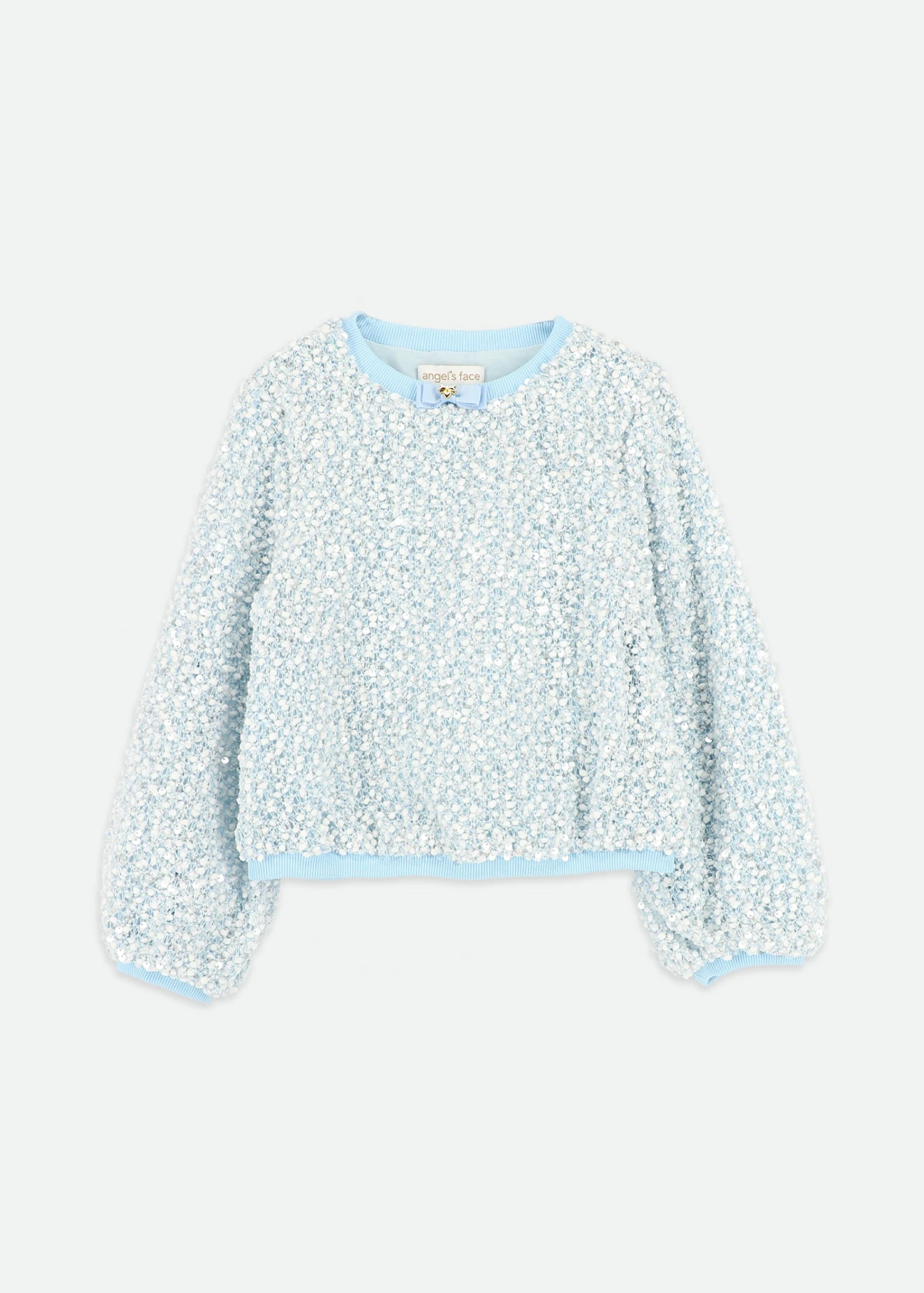Bring a touch of sparkle to any outfit with this blue sequin top for girls. Covered in shimmering sequins, it features softly gathered long sleeves and a comfortable relaxed fit. A grosgrain bow with a signature gold heart charm sits sweetly on the neckline, making it perfect for parties or dressing up everyday looks.