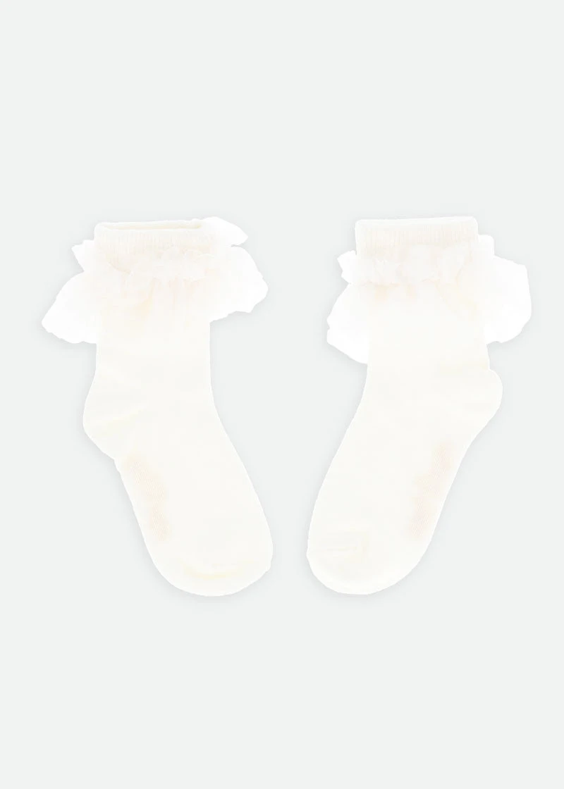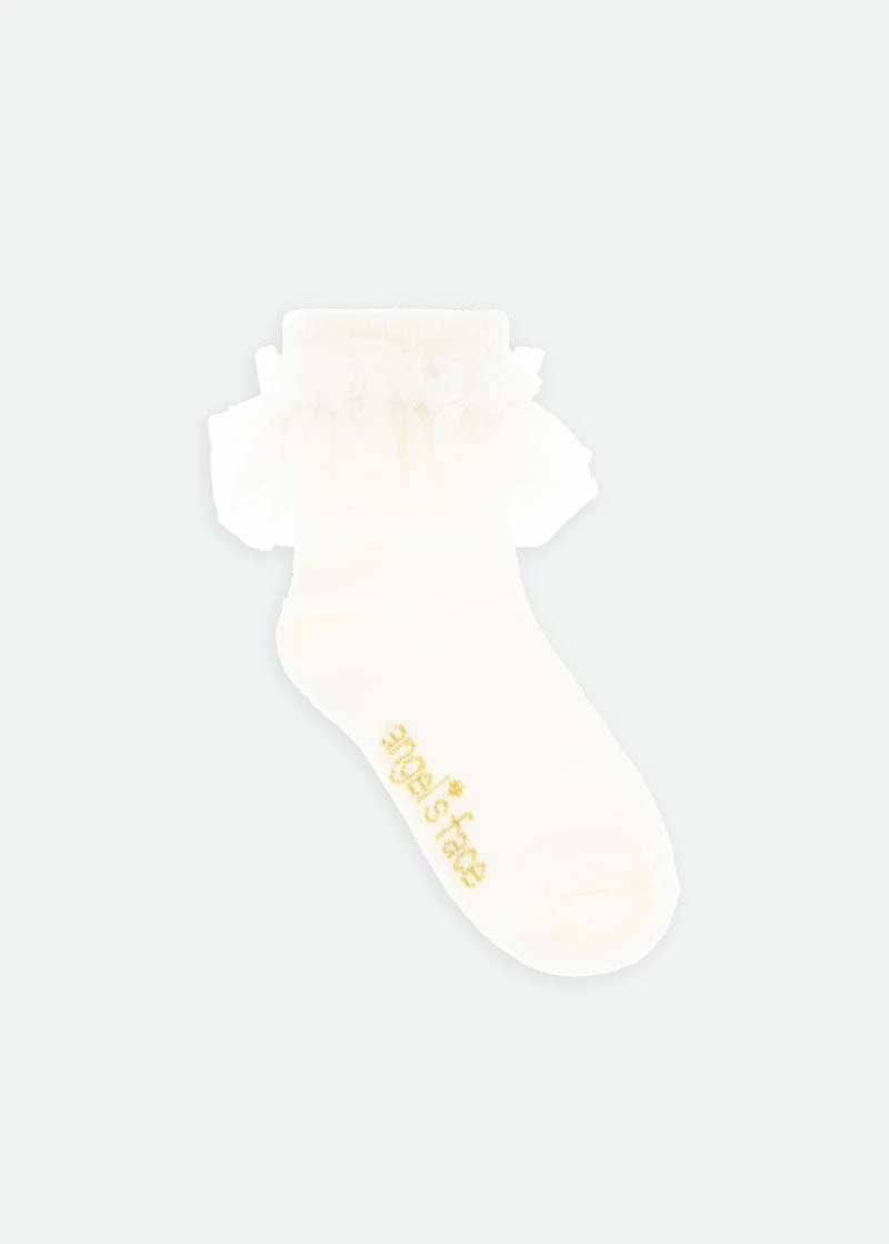 Complete your Angel’s look with our white tulle frill socks. These socks are to be worn rolled over sitting pretty on the ankle. Socks feature Angel’s Face logo on the sole.