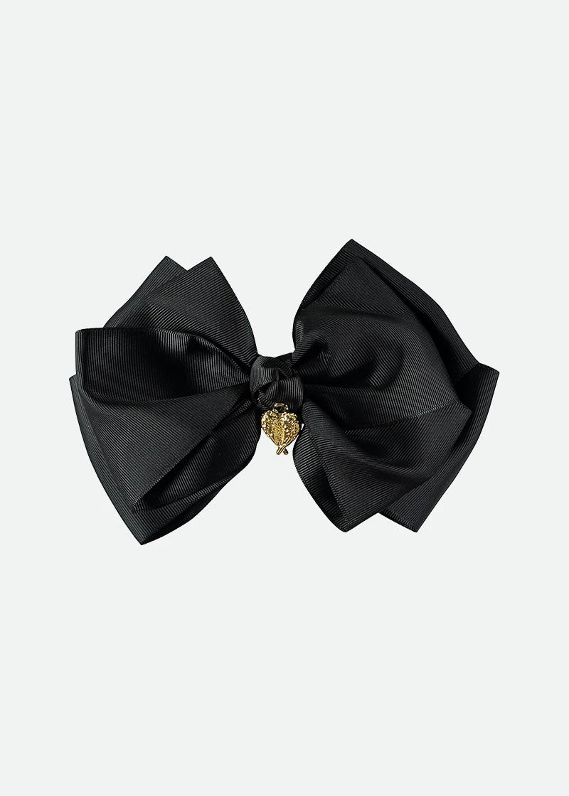 Complete the look with our giant decorative bow hairclip. This showstopper accessory will add an Angel’s Face touch to your girls outfits, available in an array of colours. The giant grosgrain bow is complete with our iconic gold heart charm on the center.
