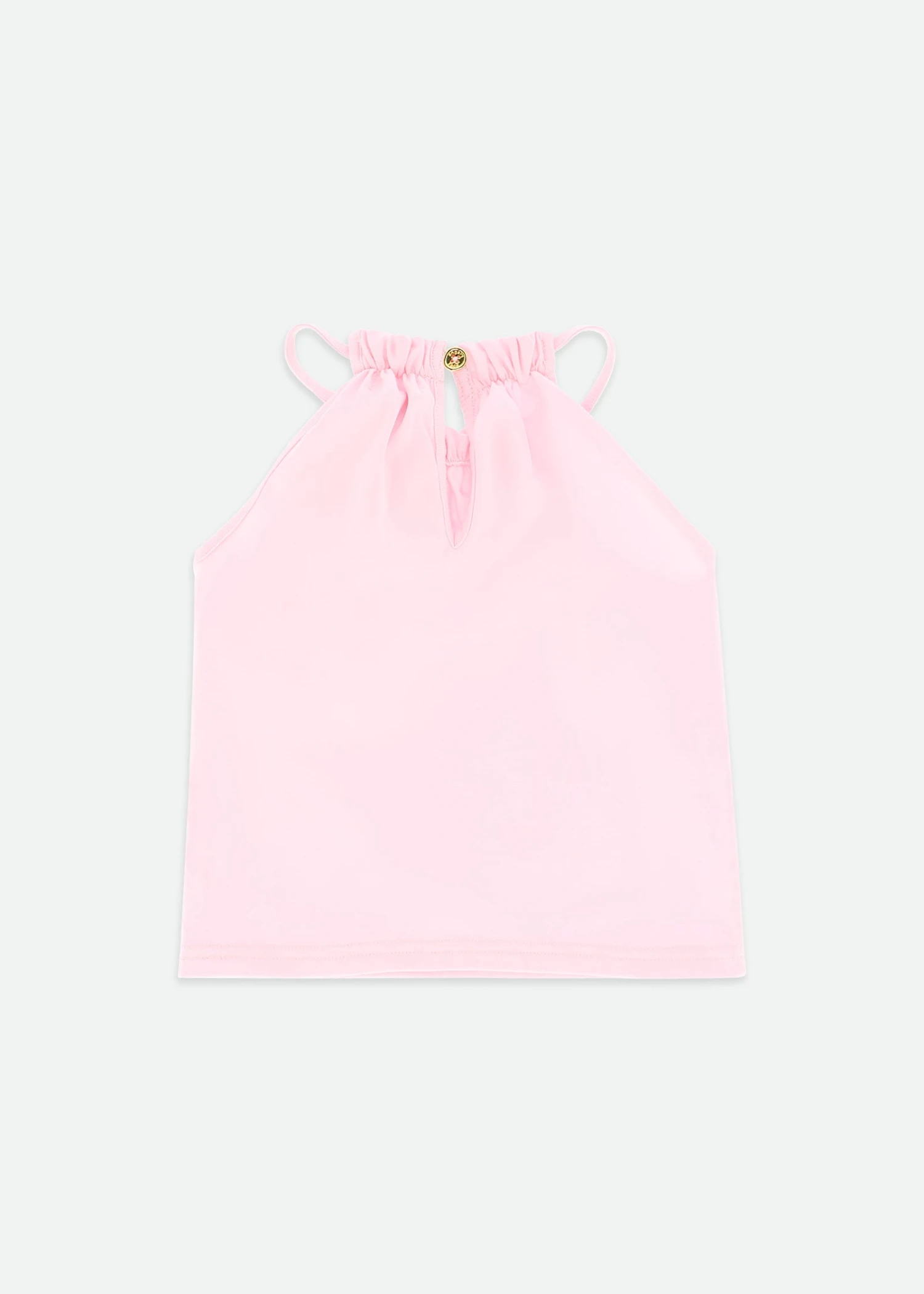 Pretty and playful summer top in fairy pink. Detailed with two fabulous tulle rosettes on the front. This cute top is smooth against the skin made in our softest cotton blend. Fastens at the back with our gold logo button.