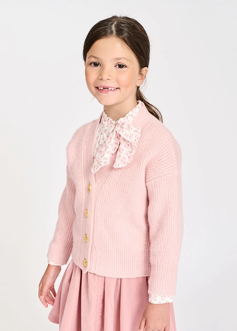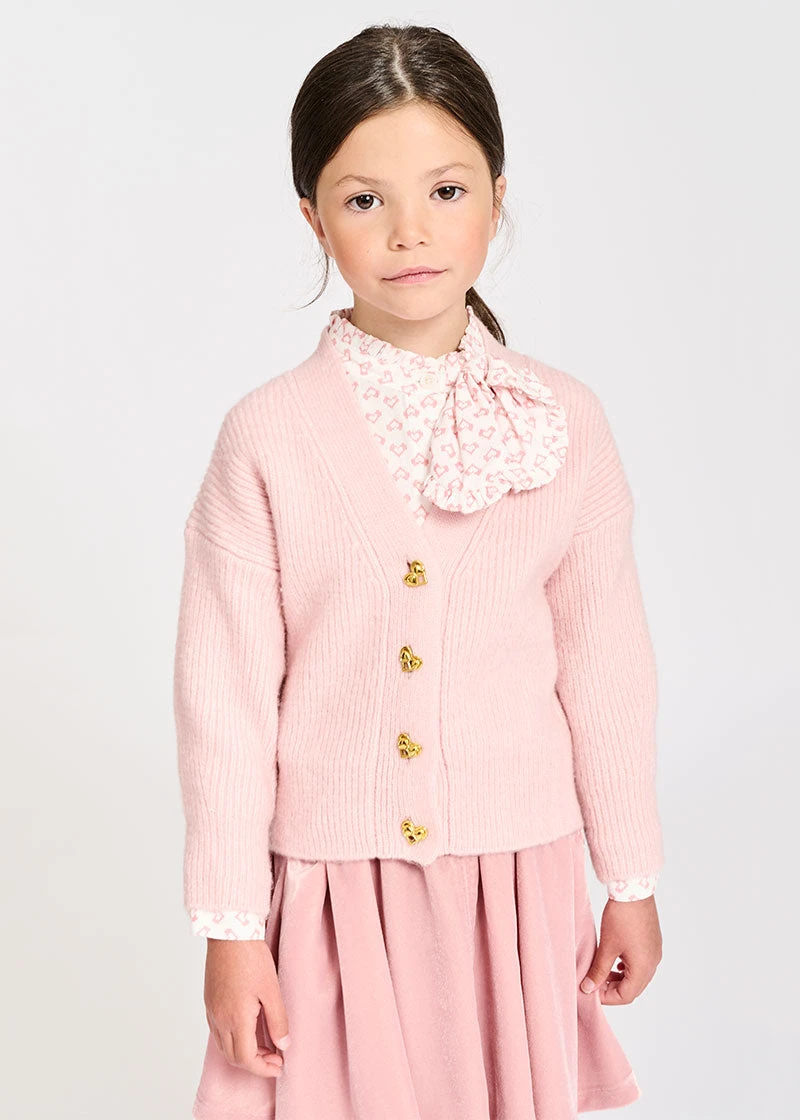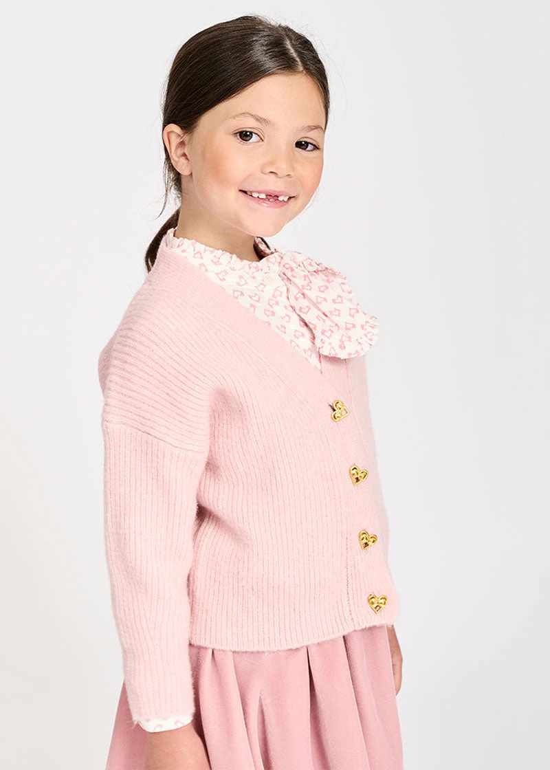 Josephine chunky knitted cosy cardigan has been designed for a super comfortable fit making the perfect addition to your little girls winter wardrobe. Our vintage inspired heart shaped buttons fasten down the front adding eye-catching detail to the colourful knit, an effortless everyday style.