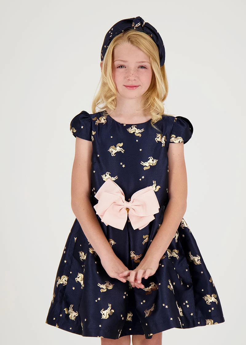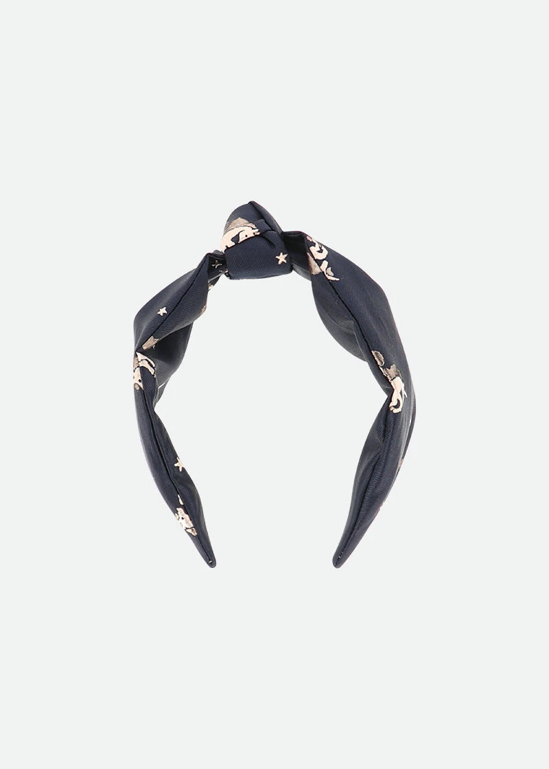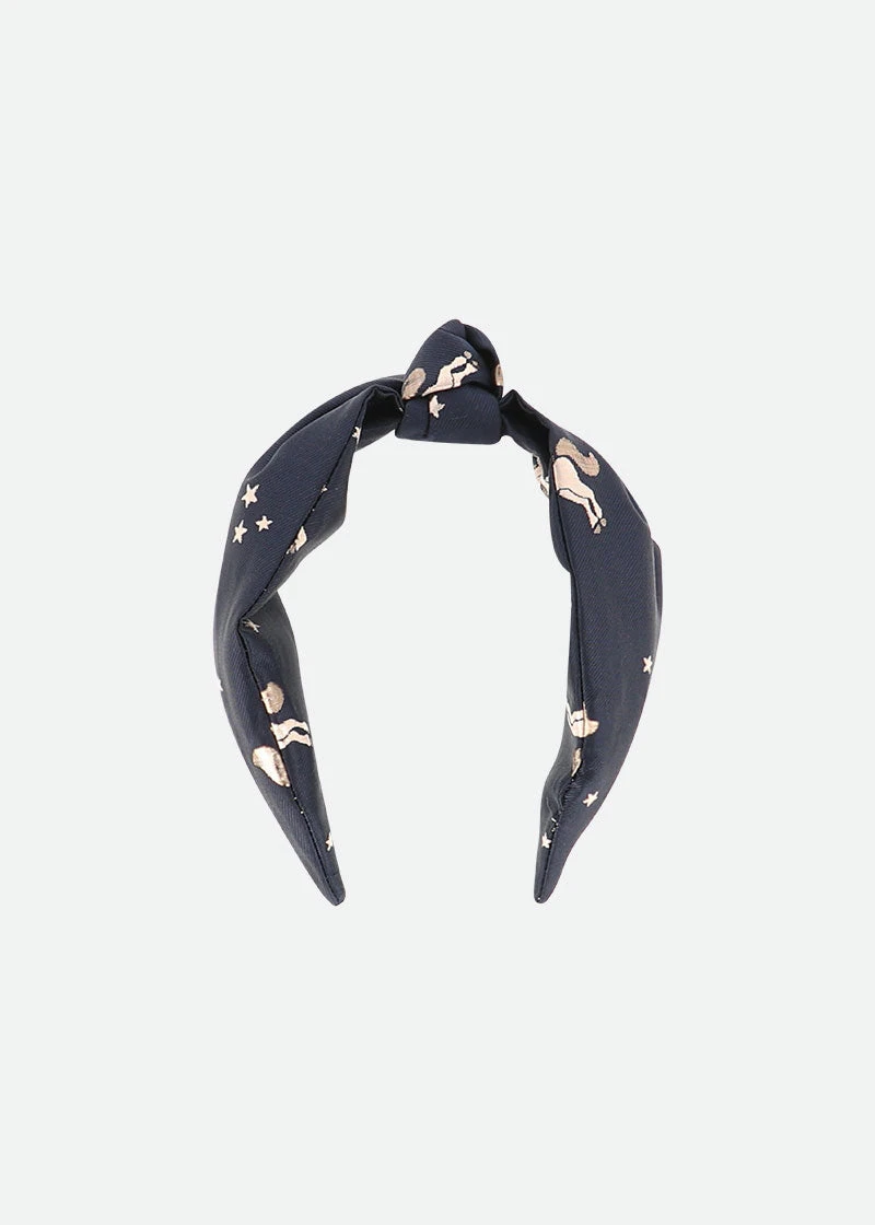 Girls classy navy headband with unicorn jacquard detail. The headband features twist style with knot in the centre. Perfect to dress up your outfit.