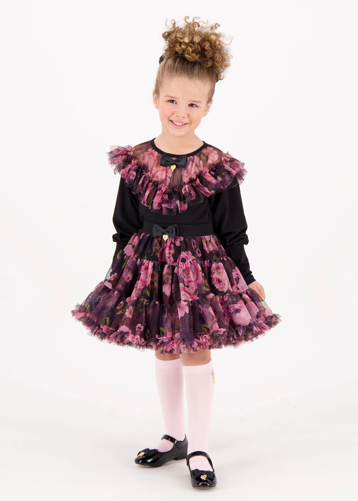 Made from endless yards of soft frills, this tutu is perfect for twirls, pirouettes and endless joyful adventures. All our Tutu Skirts are delivered in our beautiful vintage-inspired Angel’s Face hatbox. The Pixie tutu is now available in our iconic kew print, with layers of soft tulle that are tiered and gathered at the hem and finished with a new large bow and heart charm detail. An elasticated waistband and cotton lining ensures for a secure and comfortable fit.