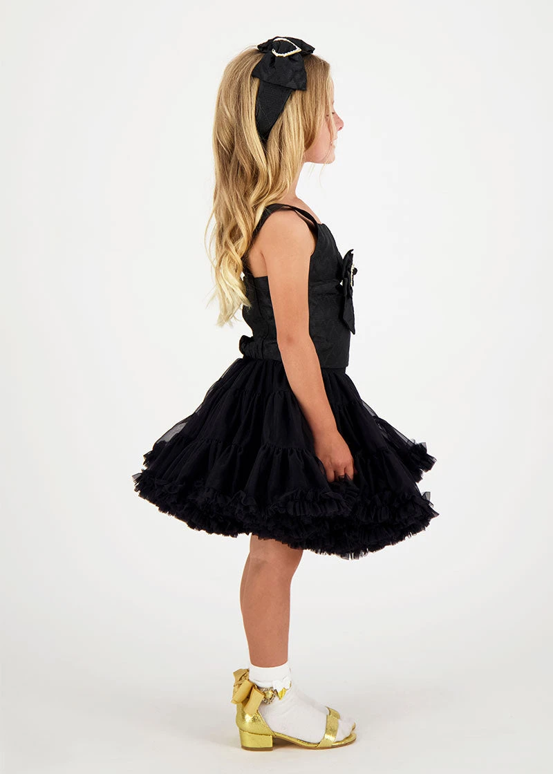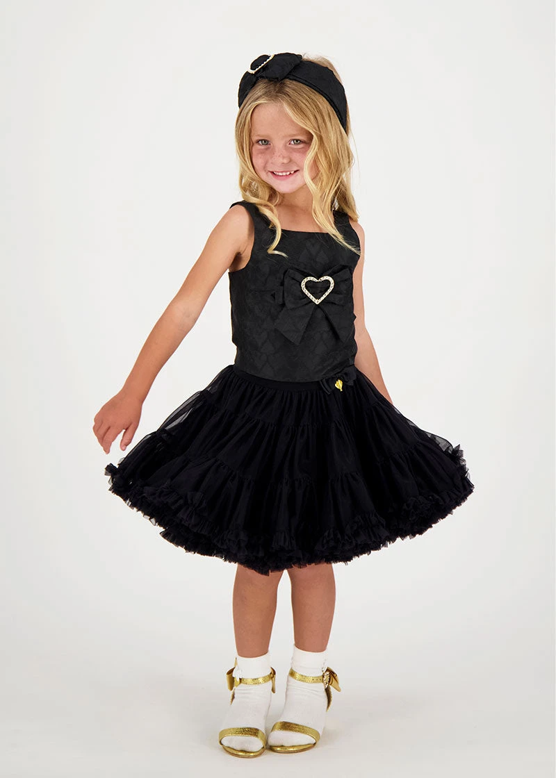 Our iconic Angel’s Face tutu features layer upon layer of delicate ruffled tulle, delivered in our beautiful vintage inspired Angel’s Face hatbox. Tutu looks equally gorgeous whether you pretty it up with a cute top and sparkly shoes or go country chic with wellies and one of our logo sweats. Gathered into a soft stretch waistband, with a comfortable jersey lining this iconic tutu is complete with our signature bow and gold heart charm sitting perfectly on the waist.