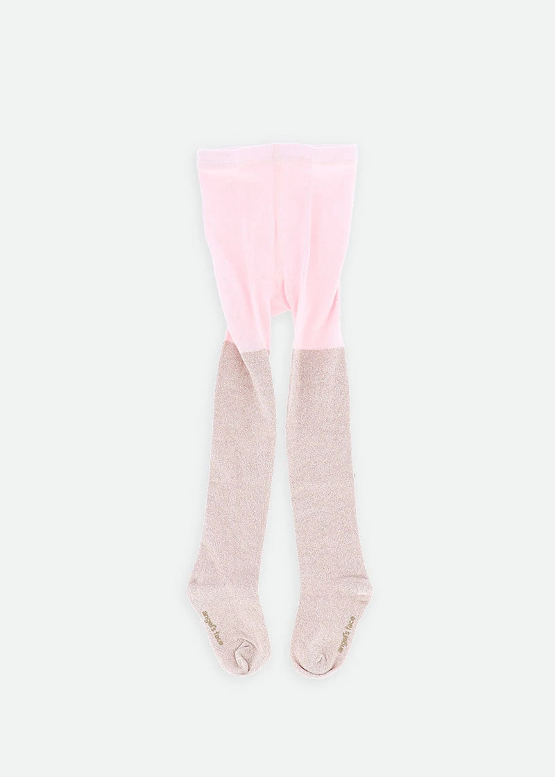 Girls pink tights with an element of rose gold sparkle. These soft and stretchy tights feature an Angel’s Face logo on the sole. Perfect way to complete your outfit.