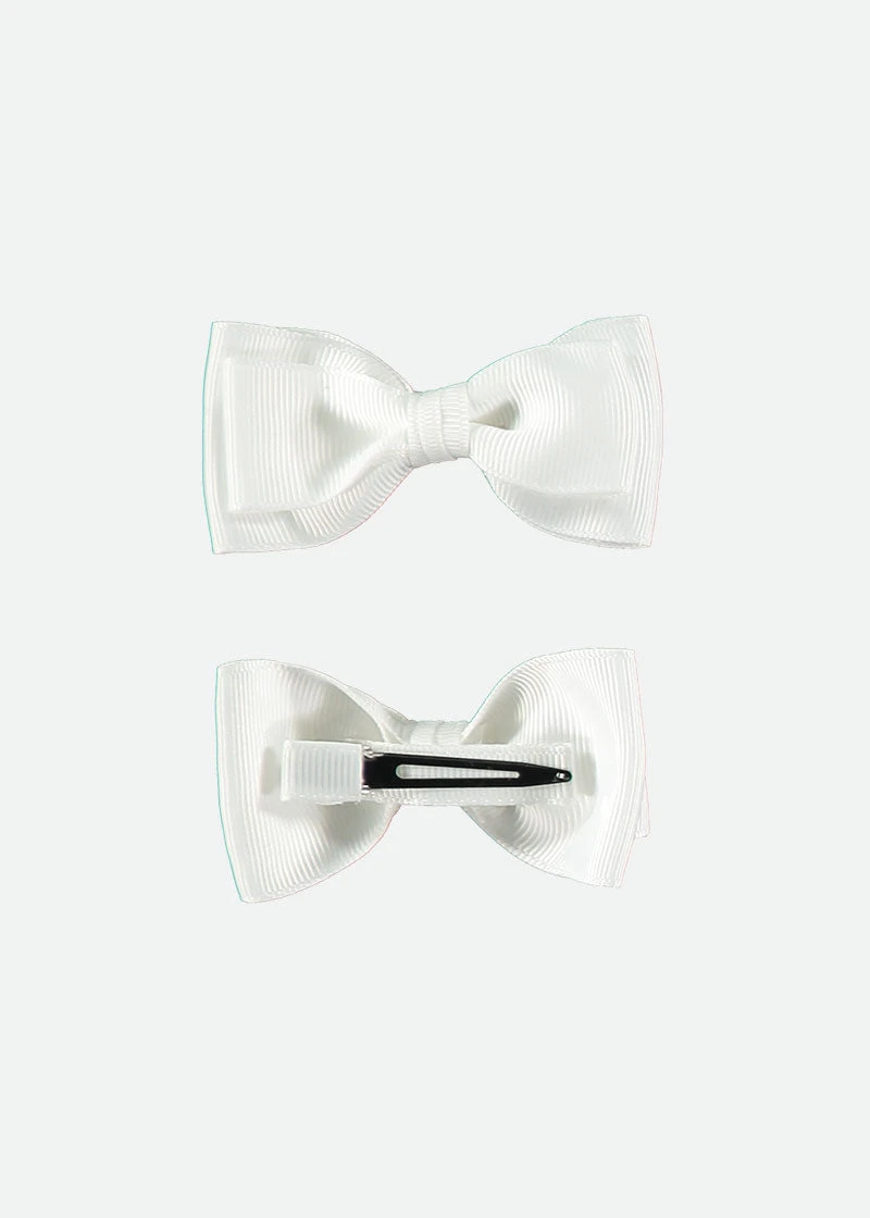 Our twin pack grosgrain bow hairclips come in an array of colours to suit your style. Each bow measures 8cm X 4cm, a delightful detail to any outfit.