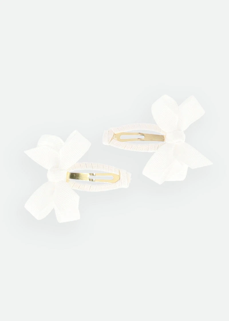 Gorgeous snowdrop white twin pack bow hairclips made from our iconic grosgrain ribbon. The perfect finishing touch to complete your outfit.